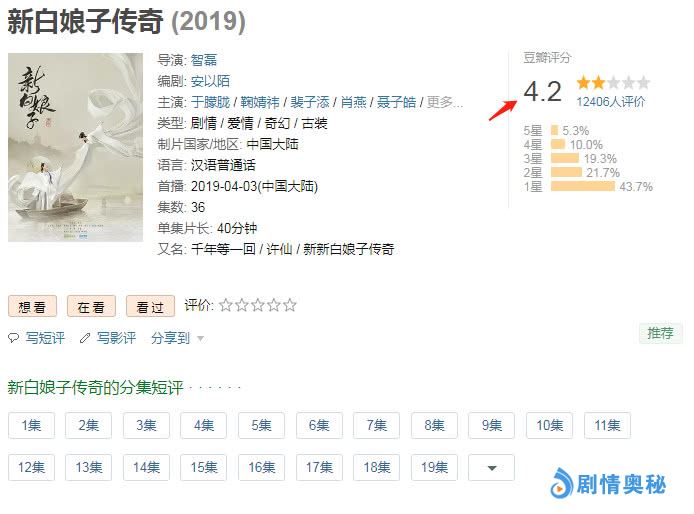 伴随着都市情感电视剧《都挺好》的完结,在陷入短暂剧荒之际,幸得有于朦胧、鞠婧祎主演的《新白娘子传奇》强势来袭,该剧主要是由台湾电视事业股份有限公司首次授权,根据1992年版同名电视剧改编,讲述了凡人医者许仙和白蛇白素贞之间千年纠葛情缘的故事。该剧于2019年4月3日在爱奇艺播出。
