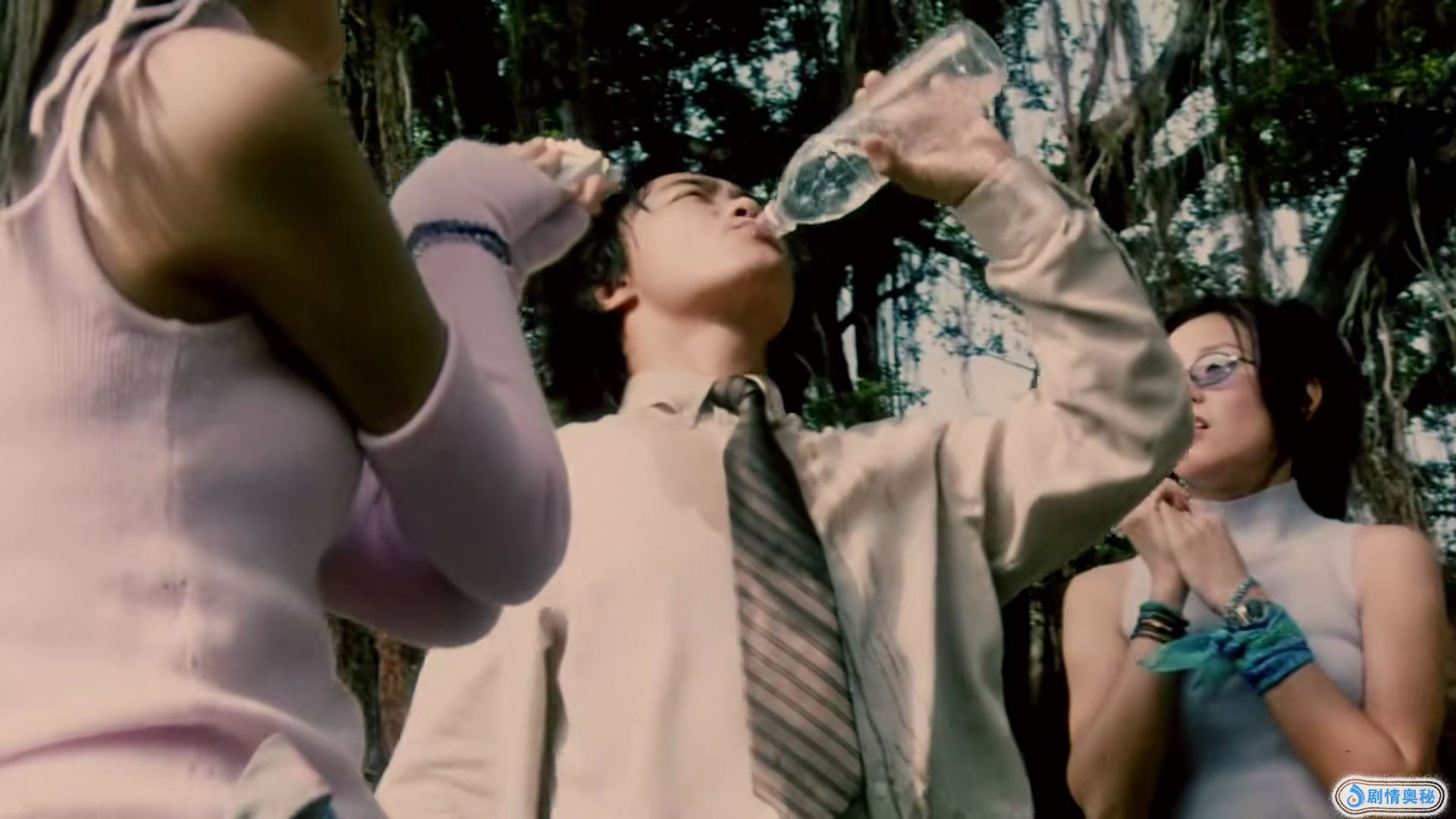 但到了《百分百感觉2》,虽是双男主设置,但Eason不再是陪衬,就连喝瓶矿泉水,摄影机也要围着他转来拍他的耍酷,戏份明显比陈晓东多。