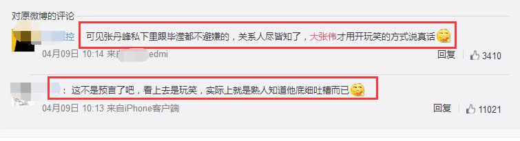 吃瓜群众调侃:可见张丹峰私下里跟毕滢都不避嫌的,关系人尽皆知了,大张伟才用开玩笑的方式说真话!这不是预言了吧,看上去是玩笑,实际上就是熟人知道他底细吐槽而已!大张伟用开玩笑的语气说出了真话,估计圈内人都知道张丹峰是什么德行,只是我们圈外人不知道。