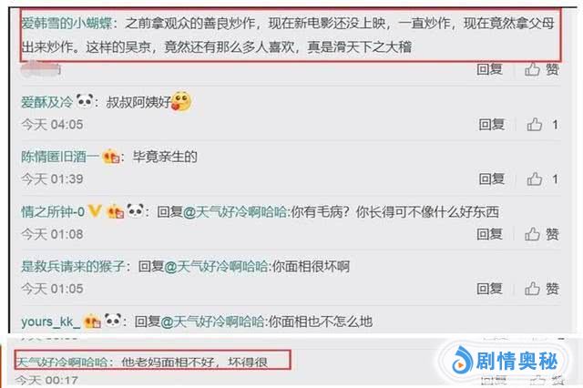 甚至还凭借着这张照片,把吴京全家都给谩骂了,有网友评论:之前拿观众的善良炒作,现在却拿自己的家人炒作,拍摄的电影一点都不好看,却只会炒作。总是在卖人设,看评论吴京可以说是很冤了