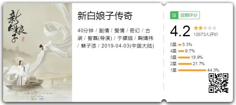 《新白娘子传奇》评分更为惨烈,目前只有4.2分。