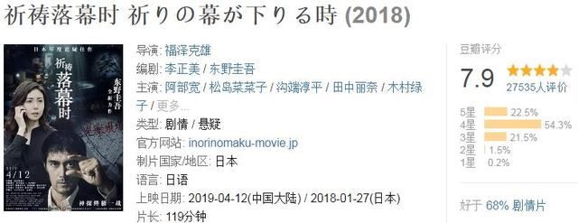 其实该片早在2018年1月27号就已经在日本上映过了,大获成功,口碑也极其出色,豆瓣高达7.9分,是一部十足的推理神作。如今该片被引进到内地市场,极有可能创造新的票房辉煌!