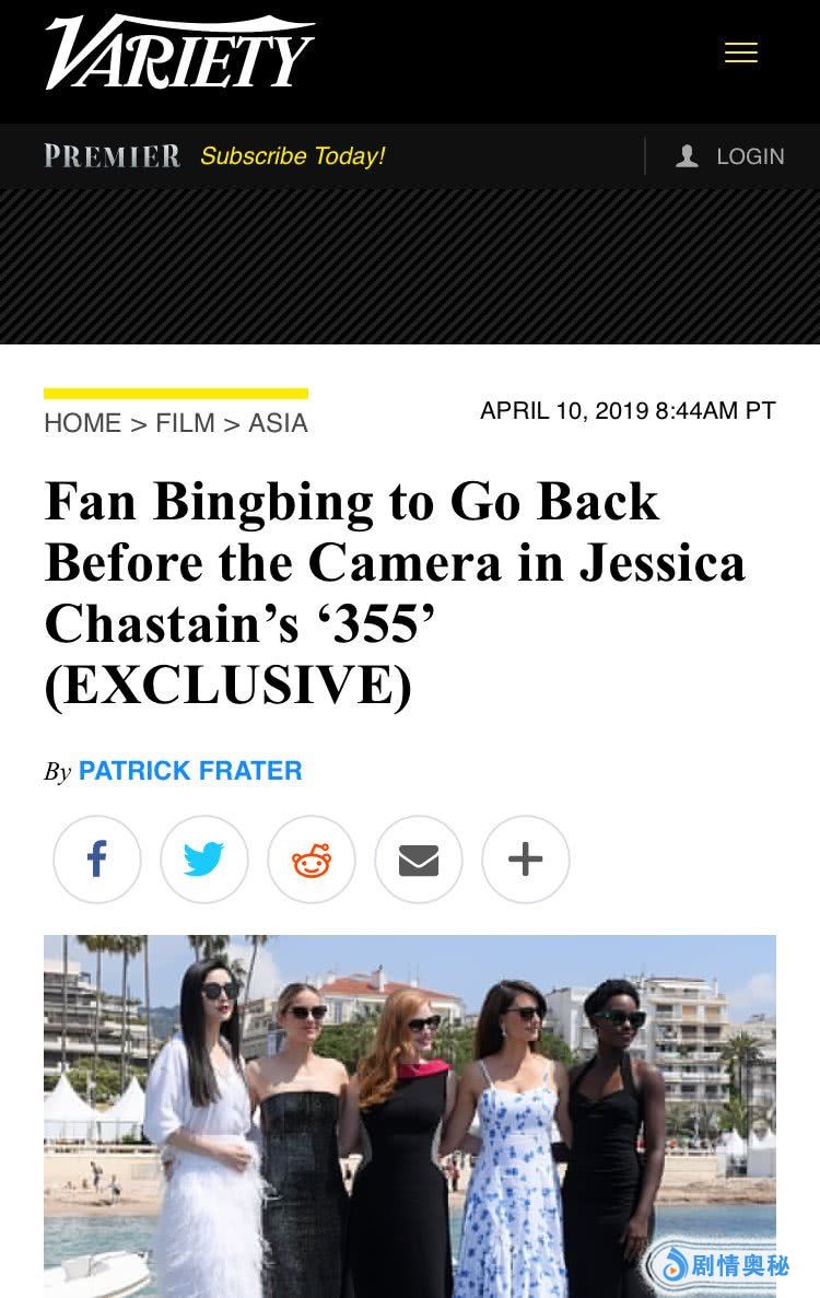 近日,外媒《综艺》的一篇独家报道吸引了中国影迷们的关注,范冰冰被曝确认复出,她将会出演一部名为《355》的国际动作大片。消息源透露,电影《355》将于2019年内开机,具体的开机日期与细节有待公布。