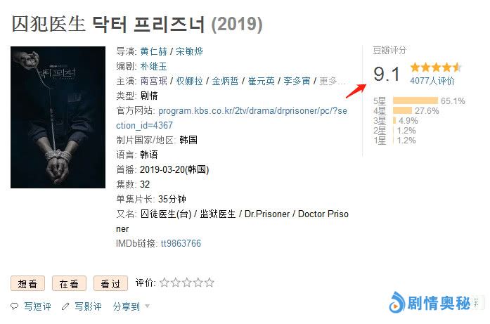 而如今,在国内多部新剧热播之际,韩国一部新剧《囚犯医生》再次吸引了国内无数观众的眼球,不仅在题材上备受瞩目,该剧自从开播以来,收视率一直保持稳步增长趋势,而且豆瓣口碑更是高达9.1分,除了令观众称赞不已,该剧几乎是提前预定了韩国电视剧年度十佳位置,甚至还有网友喊出了:“看到欲罢不能”的观后感。