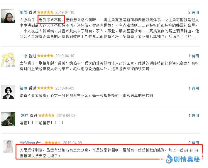 从热播后观众的评价可以得知,该剧除了延续了韩国以往经典电视剧的制作质量,更是融入了较为新颖的剧情题材,使得观众在观剧的过程中兴奋不已。起初还以为该剧会是《机智的监狱生活》2.0(医生版)呢,没想到是比我想象中层次更深的电视剧,导演的拍摄手法十分流畅,在第一集前半段帮助财阀中止刑罚的节奏抓得太好了,非常吸引眼球,令人有一追到底的念头。