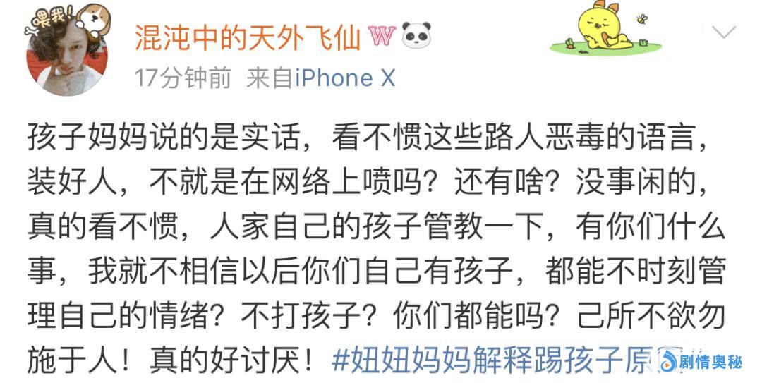 对此,妞妞妈的回应是,「我怎么打她了?我只是在旁边哄她逗她,为了好看的表情。」