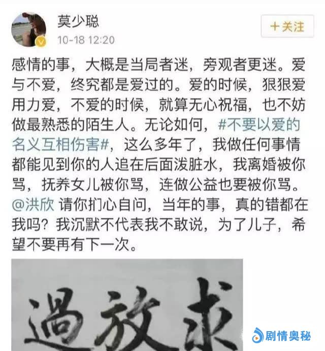 而除这件事之外,当年她的前夫莫少聪也或是怪罪她不检点行为,而要与她离婚。
