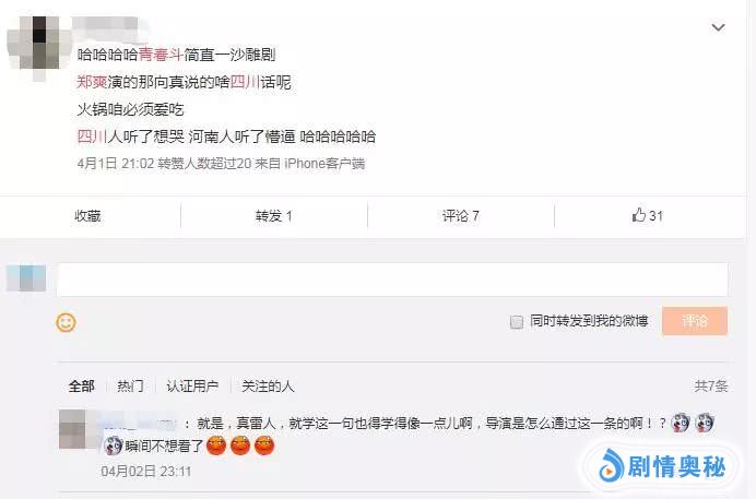 举例来说,郑爽的角色原本设定的是来自四川的“辣妹子、串二代”,在后续剧情中,或许是为了贴合设定,赵宝刚给角色设置了一句四川话,可仅仅一句台词,都没有用心打磨,郑爽原本的东北味盖过了川味,“四不像”的台词无法让人信服,观众自然不买账。