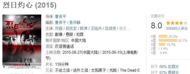 2015年8月,由曹保平执导,邓超、段奕宏、郭涛等主演的电影《烈日灼心》上映,作为一部冷门悬疑影片,票房大卖3.04亿,豆瓣更是高达8分,是一部真正的华语佳作。邓超还凭借此片获得了金马影帝的提名,可谓一时风头无两。