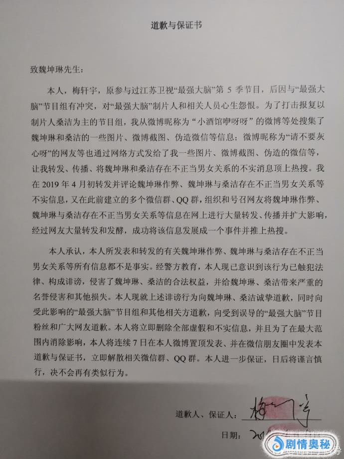 从梅轩宇这则“道歉与保证书”中能够梳理出以下两点: