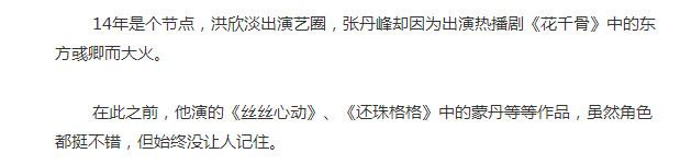 说真的,洪欣和张丹峰的演技其实也都挺不错的,但还是有很多朋友不知道他们两,直到这次的负面新闻: