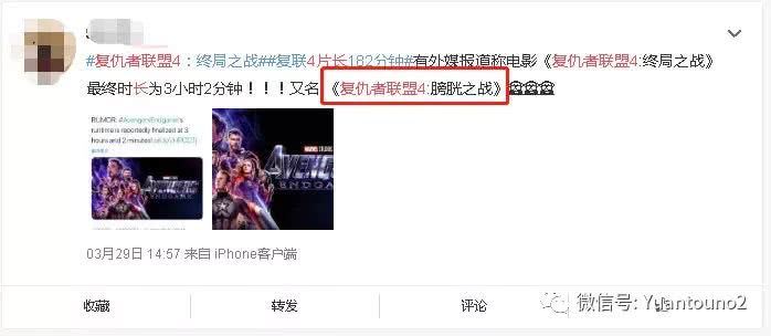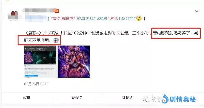 其次,作为漫威宇宙终结篇,影片时长一度长达182分钟,超过3个小时,不仅被网友称之为“膀胱之战。”甚至还有网友纷纷为广大影迷提供了众多宝贵的观影意见“观影自带纸尿裤”、“带上袋子”、而且还有友情提醒“看电影就别喝奶茶了,减肥还不用憋尿。”等等一些令人哭笑不得的观影提醒和意见。