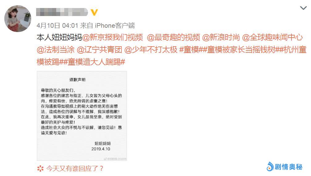 另外,我们想要看到的,是妞妞妈对自己孩子的愧疚与歉意,以及童模行业的改进。