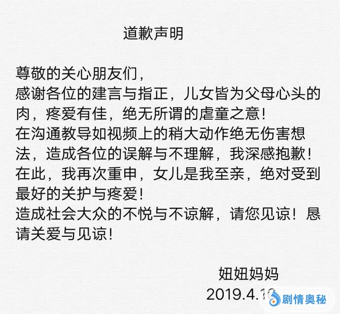 因为她需要道歉的,并不是陌生的网友,而是自己的女儿。