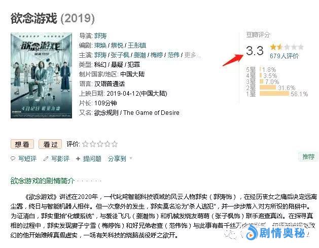 其次,影片描述的完全就是小学生漫画水平的幼稚剧情,浮夸可笑的服化道,毫无在线的表演等等一系列漏洞层出不穷,完全凸显了郭导的”实力“,他过度的表现欲望几乎是把作为演员的优点全部抹杀。原本集悬疑、科幻、犯罪多元素为一的呈现,这样的构思其实只要把握好一个,就未尝不可是一部佳作,但首次执导电影的郭涛,在《欲念游戏》对这一系列元素的揉合,让人所见的却只有一地鸡毛。