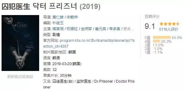 3月底,诞生了一部惊艳的韩剧《囚犯医生》,共计32集,每集约30分钟,目前已播出16集。