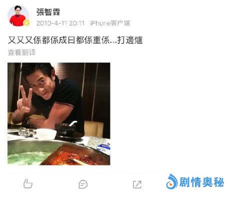 郭富城曾在微博上晒出张智霖吃火锅后的照片,从言语中可以看出,天王心情相当好,还对着镜头比起了“耶”,而张智霖却是一脸生无可恋状,对比不要太明显!