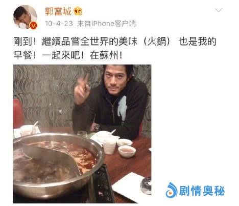 郭富城爱火锅到什么程度呢?大概就是早餐都能吃火锅……