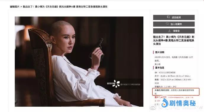 ——近日来全网捶打视觉中国。4月11日,某律师发文称视觉中国曾向其顾问单位发来文件,称顾问单位使用了版权图片,要求付费。打开文件之后,发现所列照片竟是顾问单位旗下艺人莫小棋的剧照。而视觉中国并未获得授权。这一消息也得到了莫小棋本人的证实。(莫小棋这张光头照出自剧集《天衣无缝》,她饰演的苏梅,真实身份是国名党特务,从开始被抛弃到后面脱胎换骨,拯救自己。为了角色的需要,她剪去了一头秀发。)