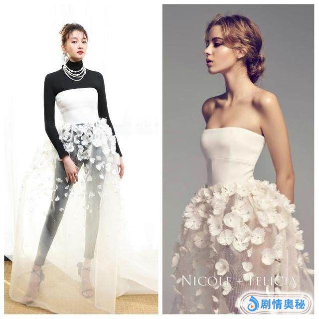 赵丽颖的这条白色缕空长裙,和模特的穿着对比,很明显的是内衬的区别,模特采用的是白色抹胸与安全裤,赵丽颖是里面搭了一个白色的吊带长裙,显得更加清纯有少女感。