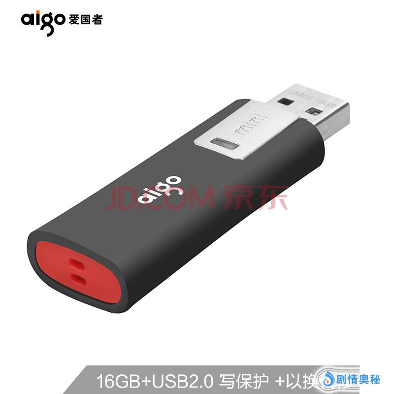 爱国者(aigo)16GB USB2.0 U盘 L8202写保护 黑色 防病毒入侵 防误删