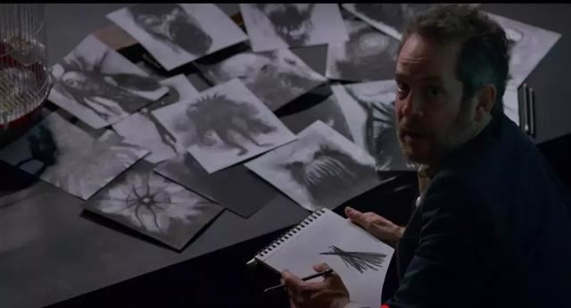 除了忽然闯入的大叔手绘的那一系列诡异黑暗的素描,电影自始至终没有完全的展现过怪物的真实样貌,