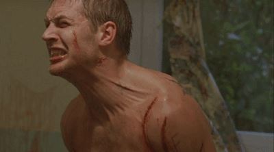 尤其是斯图尔特自残那场戏中,汤姆·哈迪爆发力十足,全裸出镜,先是颤抖、不知所措,接着呐喊、咆哮,全身根筋分明,你不用了解他的过去,就能感受愤怒、压抑与无奈。
