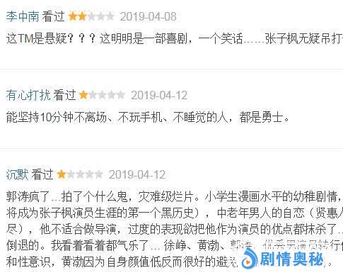 这样的阵容按理说这部《欲念游戏》票房应该会很好的。但没想到该片上映3天累计票房只有653万,豆瓣更是低至3.1分,创下了郭涛和张子枫近年作品口碑新低,实在尴尬。很多网友也对影片吐槽万分,直言“能坚持10分钟不离场、不玩手机、不睡觉的人,都是勇士。”、“灾难级烂片”,也是无语了。