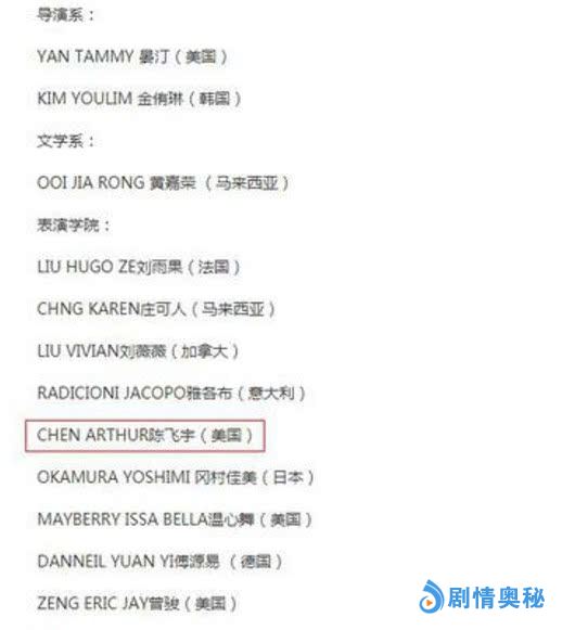 新金牌娱乐观察家知道,陈飞宇可是娱乐圈最炙手可热的小鲜肉,之前和欧阳娜娜演《秘果》就火了一次,后来《将夜》的播出,又让陈飞宇的人气爆棚。最近陈飞宇被北京电影学院录取了,可是粉丝看了一下名单,发现陈飞宇是美国人。