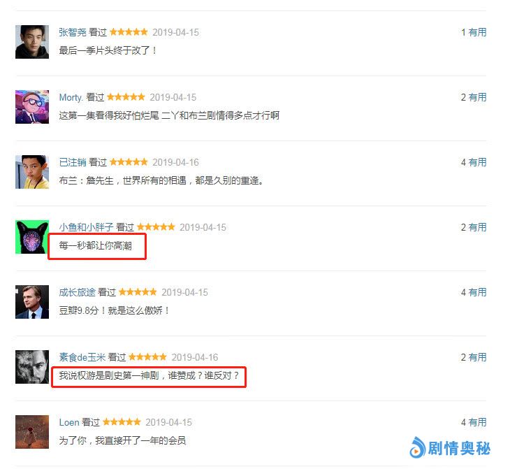 如今,在《权力的游戏》第八季首播后,不仅以炫酷的全新片头吸引眼球,听到熟悉的片头旋律更是令人热血沸腾,一度燃到炸裂。除此之外,剧中雪诺和二丫兄妹的久别重逢更是让人泪目; 布兰和詹姆再相遇后的对视,不禁让人感慨万千; 一幕又一幕的重逢再相见,真的太令人感动落泪了。毫不夸张的说,就凭借“权力的游戏”这五个字我就要吹爆,何况这还是最终季啊!