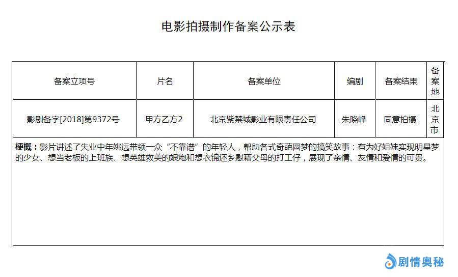 近日,电影《甲方乙方2》宣布立项,备案信息中显示,影片的编剧为朱晓峰。