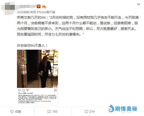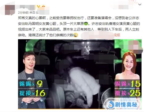 妻子郑秀文曾经在社交平台发文说二月份在做康复运动,没有拐杖的话几乎没办法走路。到今天为止,张秀文的腿还没有彻底100%康复,以前还得过抑郁症,现在老公许志安就开始和别的女人瞎搞,心很宽啊!不好好陪妻子做康复,却陪小三亲吻偷吃,真丢男人的脸。