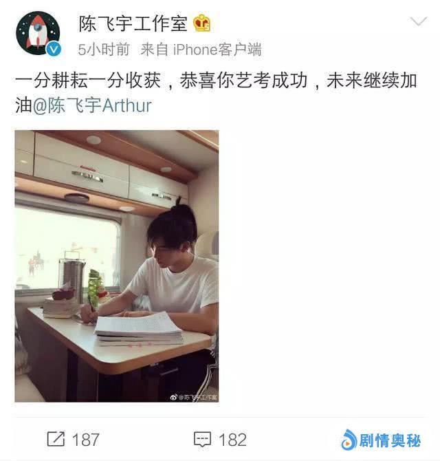 4月15日是北京电影学院放榜的日子,而陈飞宇作为今年参加艺考的星二代之一,一直以来都备受网友的关注。陈飞宇工作室也通过社交平台官宣这一好消息,发文称一分耕耘一分收获,未来继续加油。并配了一张陈飞宇在拍戏间隙复习功课的照片。