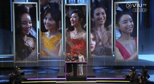 等待颁奖人念出名字前,屏幕上出现了影后候选人的脸,其他人都静止微笑,坦然地看着前方,只有曾美慧孜有些紧张,忍不住往下看了几眼。