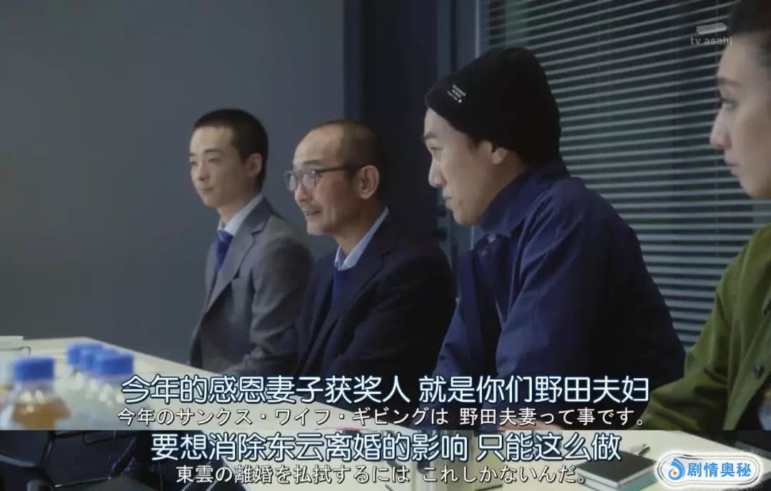 电视台考虑到此事会对收视率产生负面影响,决定做一个「感恩妻子」颁奖活动,而获奖者正是野田夫妻俩。