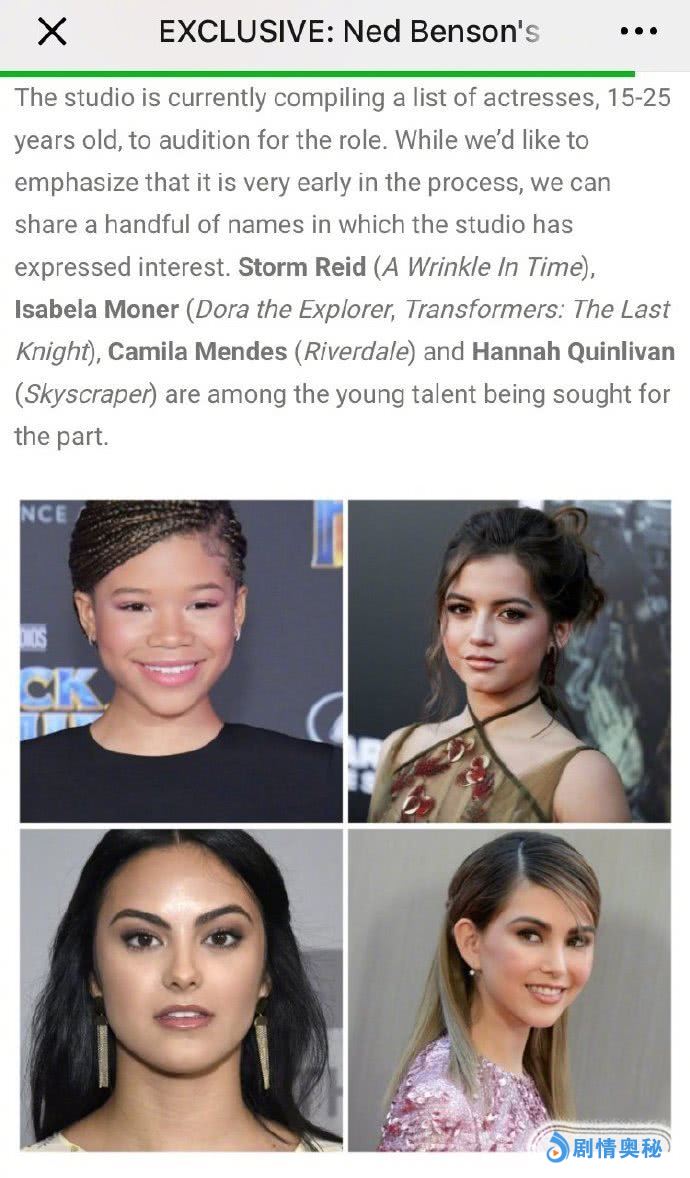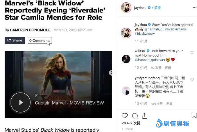 而今日,又一选角消息传来,这个演员就是台湾女星昆凌,也就是周杰伦的老婆,而这个传言就连周杰伦本人都在社交网络上点赞了。这个传闻的具体是:《黑寡妇》片方需要一个非白人女星的加盟,15-25岁,并列出了一个名单,而周杰伦妻子昆凌就在这个名单之中。除此之外,还有《时间的皱折》的Storm Reid,《变形金刚5》的伊莎贝拉·莫奈、《河谷镇》的卡米拉·门德斯等。