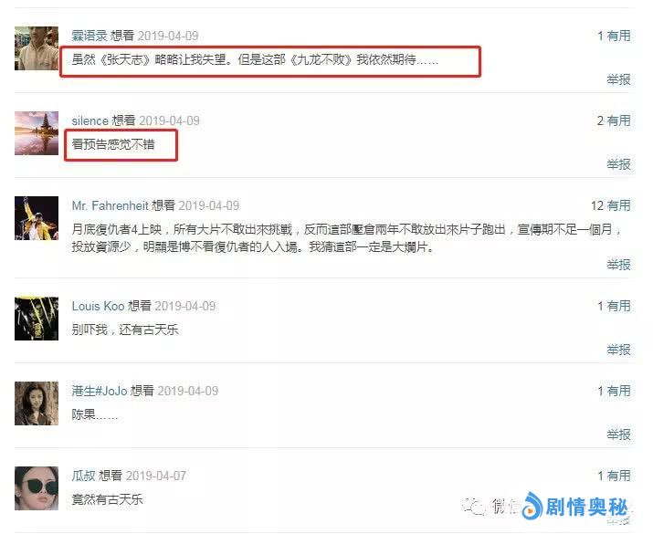 虽然比《复仇者联盟4》晚上映一周,但是影片《九龙不败》依旧令观众捏一把汗,毕竟同档期下于《复仇者联盟4》正面突击,完全就是以卵击石,除了票房上毫无胜算而言,口碑上或许也会大打折扣。