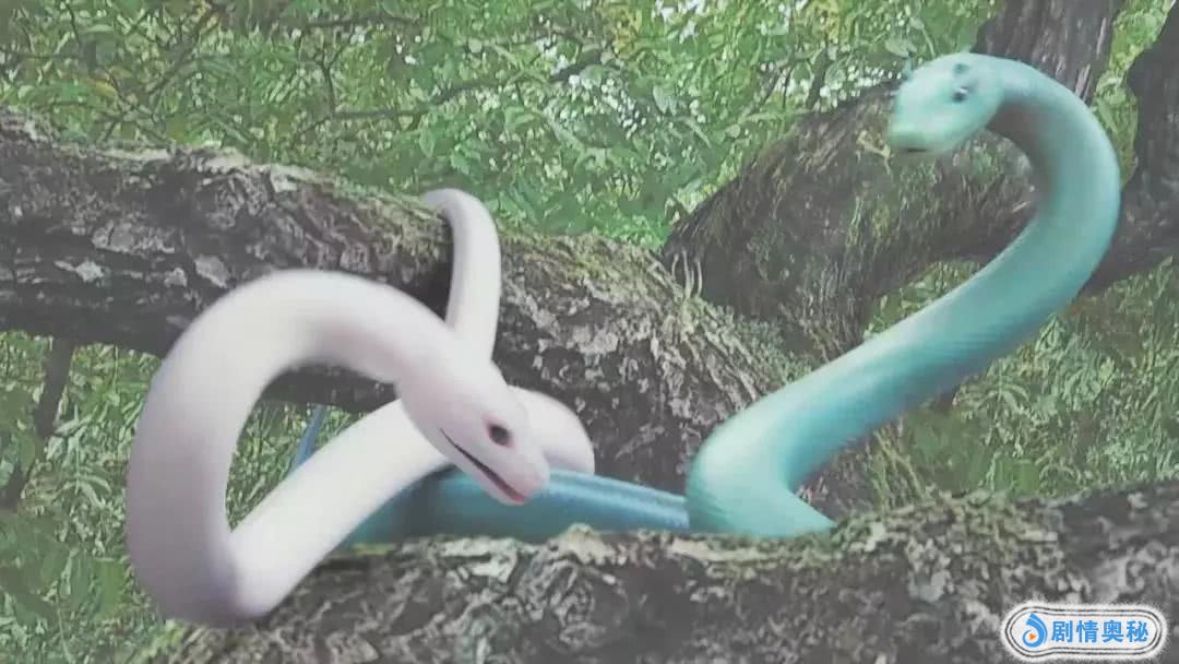 一白一青两条蛇,连个蛇皮都不给整,光滑得没有一丝纹路。
