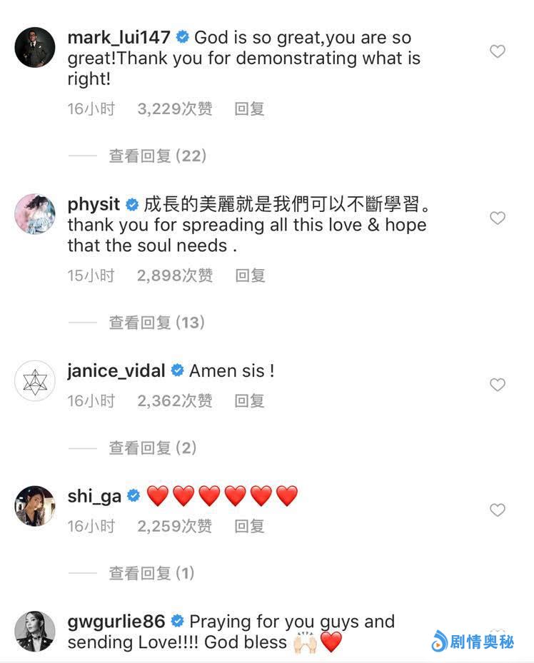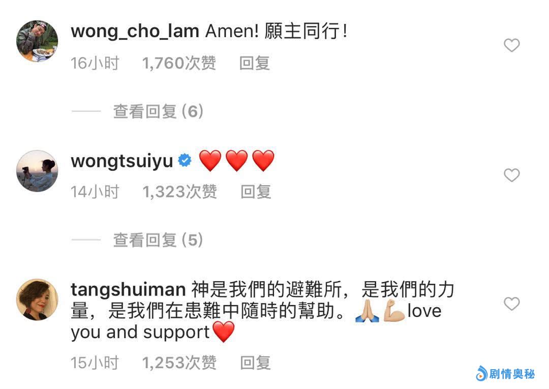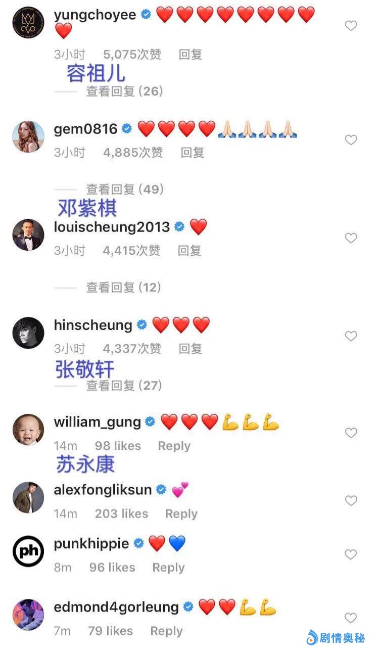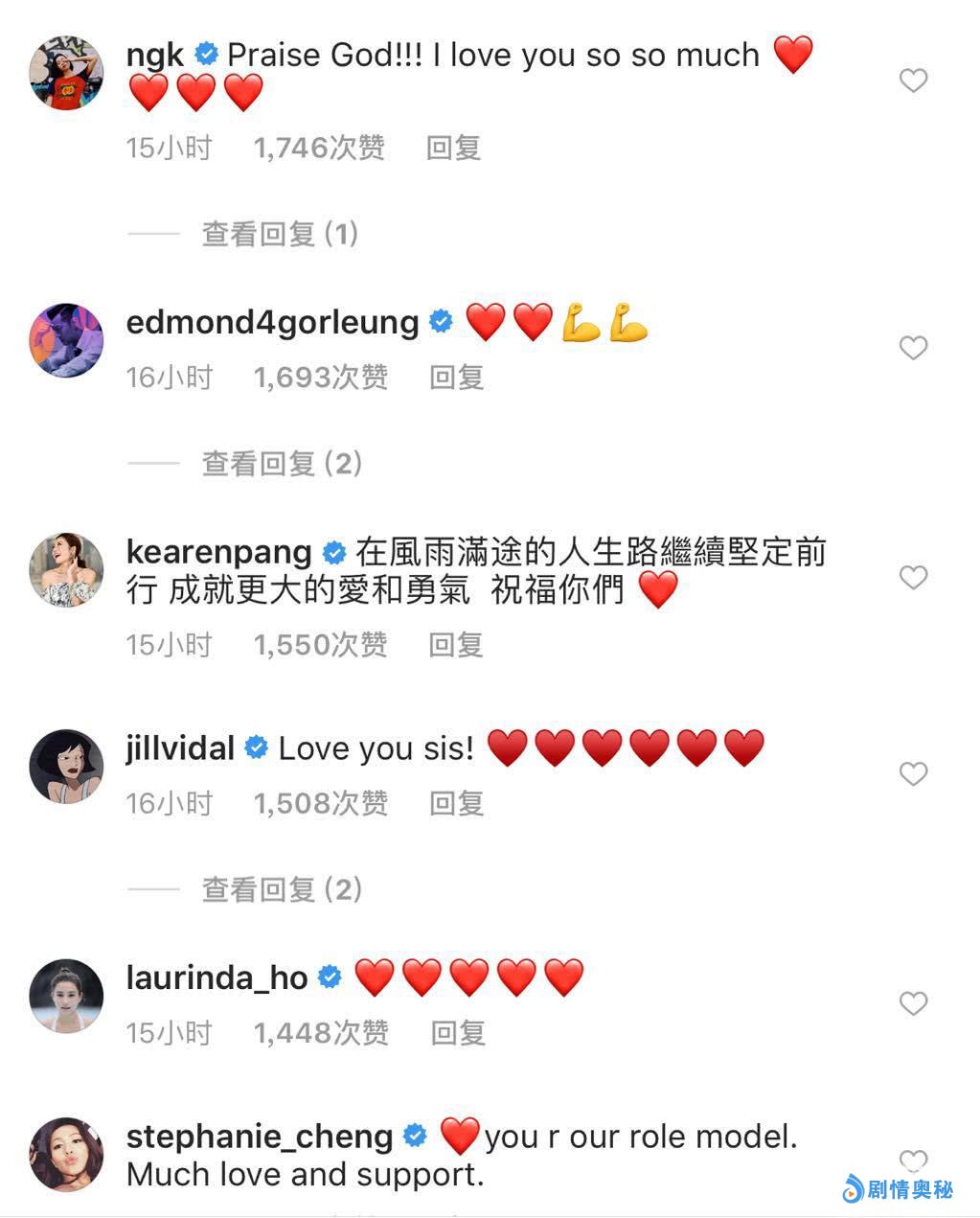 另外,留言安慰的还有江美仪、梁汉文、彭秀慧、何超莲等香港艺人。