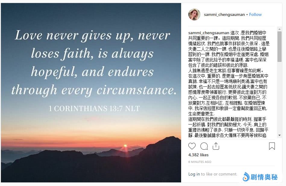 王祖蓝、邓萃雯也留言鼓励,原来两个人和郑秀文一样都是教徒。