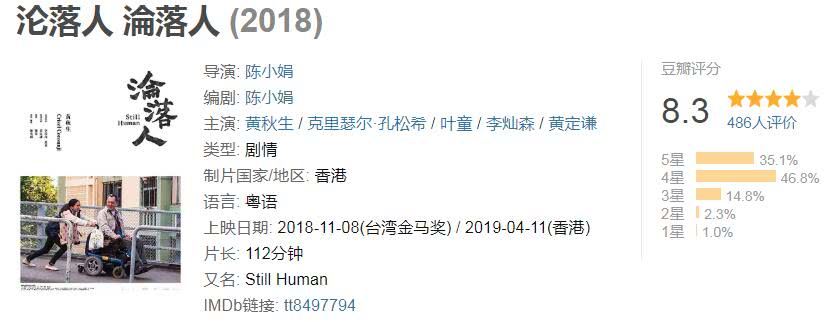 《沦落人》口碑爆棚好评如潮,就连内地观众都打出高分,豆瓣8.3分,但它的票房成绩真的很一般。截止昨日累计500万港元左右,虽然上映后逆袭了《反贪风暴4》连续蝉联单日票房榜首,但仅收到这点票房真拿不出手,需要说明的是该片海外几乎是零票房。男主角黄秋生夺得金像奖影帝却输了票房,若有得选相信他也会选择票房大卖吧?