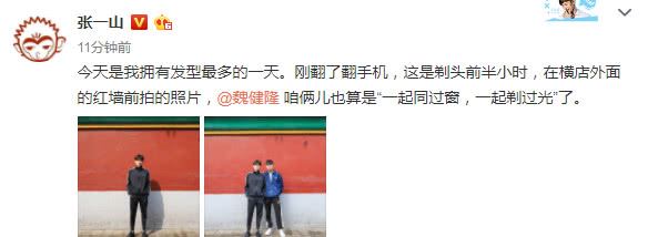 而在4月19日晚,张一山在微博上晒出了他剃光头前的照片,当然他还拉上了同组的演员魏健隆 。这一位在《鹿鼎记》中饰演什么角色暂时不知道,但他是张一山的同学,而且他为了戏中的角色也剃了光头。