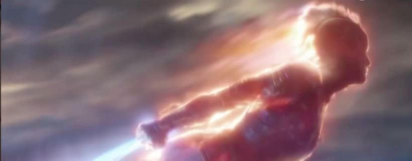 惊奇队长继续在空中酷炫飞行,360度狂拽酷炫,一看就是打败灭霸的样子。