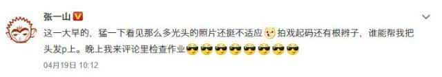 张一山为拍戏剃光了头发,近日在机场被媒体拍到,张一山也在微博喊话:这一大早的,猛一下看见那么多光头的照片还挺不适应,拍戏起码还有根辫子,谁能帮我把头发p上,晚上我来评论里检查作业。