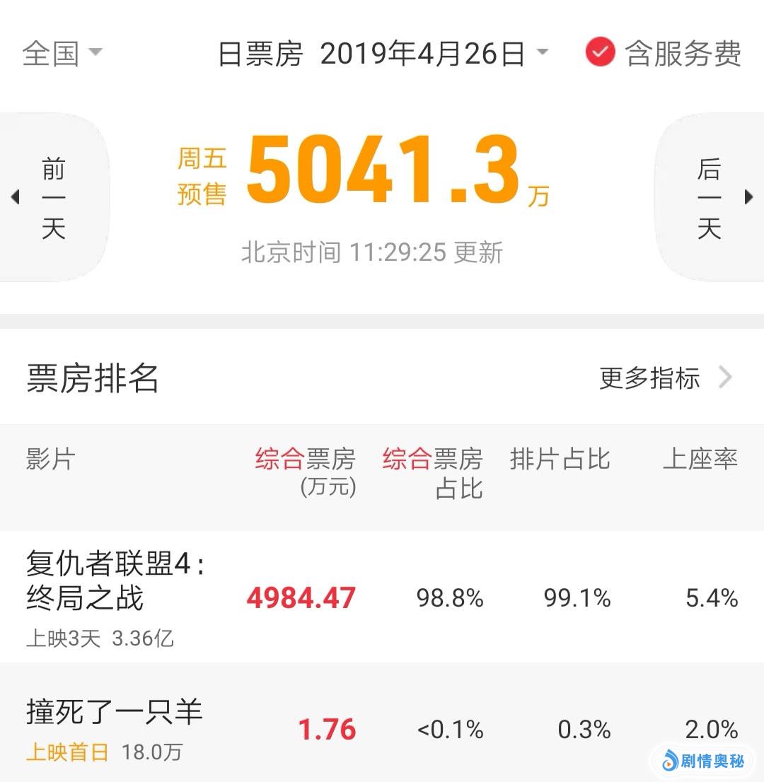出现这种情况,是因为当时影院有另一部电影上映,那就是《复仇者联盟4:终局之战》。漫威超级英雄集结,复联4在26日的排片已经超过了99%,强势挤压了上映的同期电影。