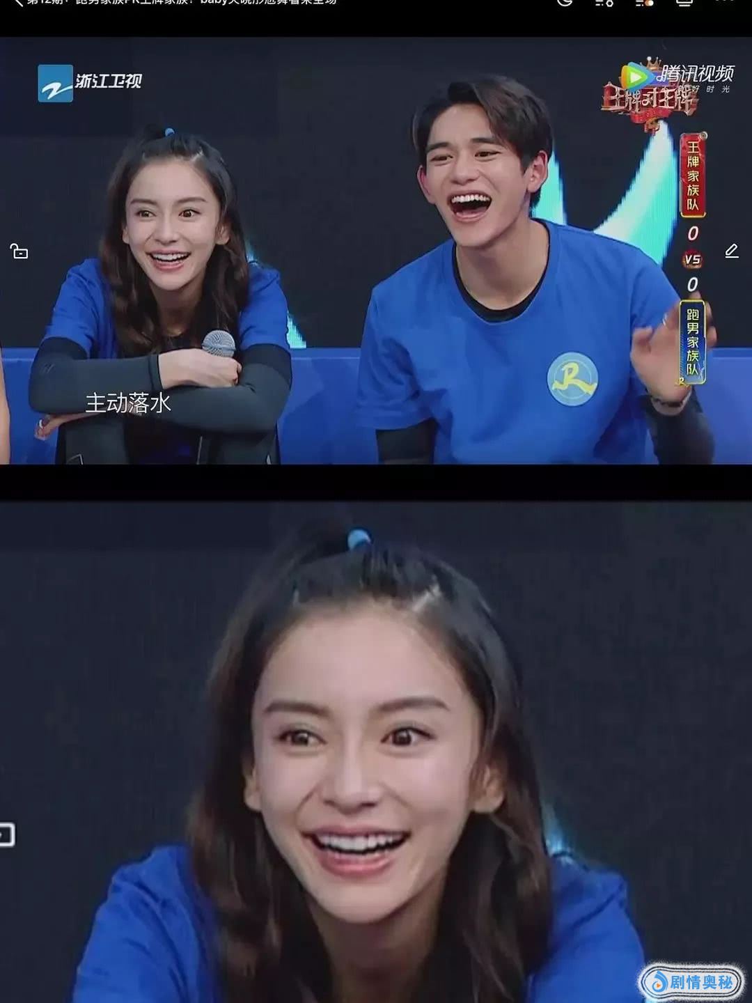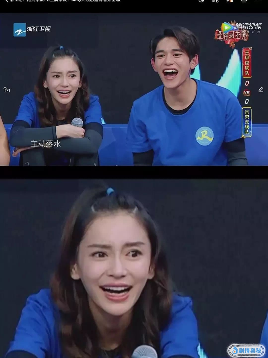同样是大笑,对比之下,隔壁的新人黄旭熙脸部自然多了,baby的脸看着有点怪怪的。