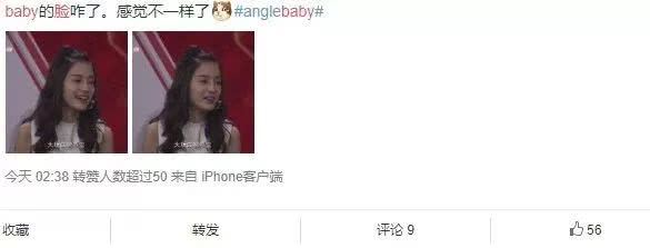 如果是大表情截图有点恶意,下面这张无表情截图基本就没有争议了吧?就算没有表情,baby看起来也和以往状态不大一样。