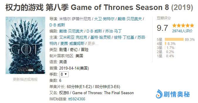4月14日,剧王回归,豆瓣开画9.7,这是季季9+的《权游》的正常操作。