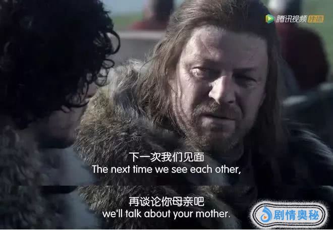 第一季,雪诺的身份还是私生子,父亲奈德告诉雪诺:“我们下次见面时,我们再谈论你的母亲”。