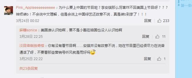 其中有一个相对客观的留言,也能大概代表纳兰对于这一事件的态度:李安琪在节目中到底愿意用中文交流或者用英文交流,这完全是她不应该被干涉的个人自由。尤其对于提倡文化自信的国人来说,对于不同语言,不同文化的包容性本身就是再稀松平常的事;当然对于李安琪来说,既然来录制面向中国观众的节目,说中文自然是更加与中国观众容易拉近距离、加强沟通的方式。毕竟如果最终由于语言沟通交流不畅,节目效果差强人意,谁还会再请夫妻俩来做节目呢?